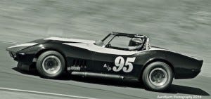 In the race Sunday morning, Porsche and I dueled. I could not escape, him, either. I tried to scrape him off on the Studebaker driven by Rex Easly (probably the fastest racing Studebaker in North America, maybe the only racing Studebaker in North America) but Porsche wasn’t fooled. He got by me once coming out of a turn but I followed him close to the next, where he bobbled. I got by him again and then shut the door and that was that. You can see that here.