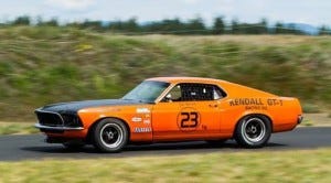 ‘Stang has all the power one can put under that hood. He had a pretty good weekend, too, but Spokane can punish as well as reward. Once at Spokane, ‘Stang tried to go around someone on the outside and caught the gravel on the edge, then the bank on the opposite side, then a large rock. He said he was glad the little building that’s there now wasn’t there then or he would have collected that, too.